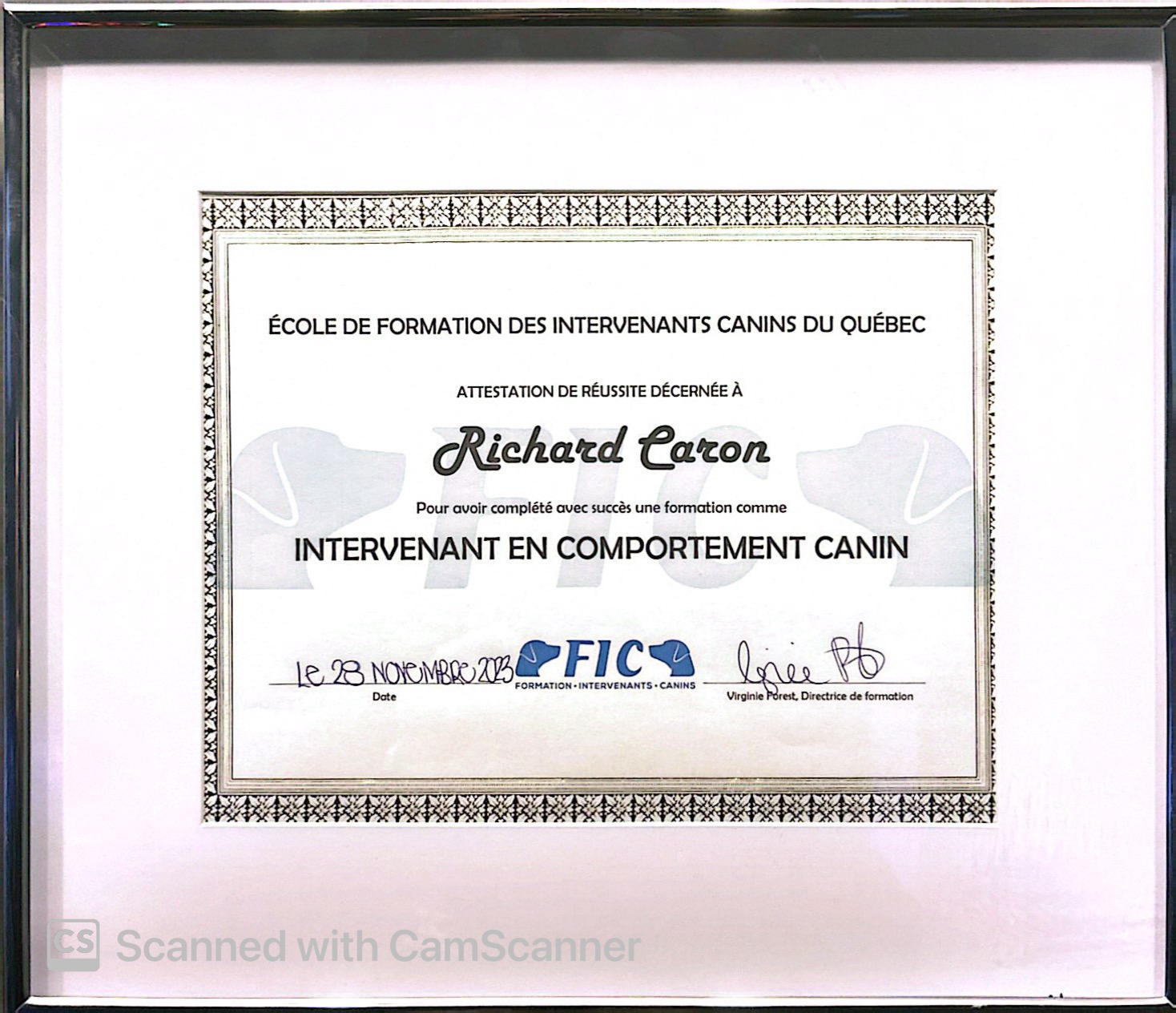 Je me présente, mon nom est Richard Caron et pour ceux qui me connaissent, c'est Rich !! j.ai 53 ans et j'ai gagné ma vie dans le service à la clientèle en repésentation dans le domaine de l'automobile depuis déjà 34 ans. J'ai eu des chiens pratiquement toute ma vie, mais ne connaissait pas grand chose a leur besoins à part les nourires, les sortirs pour faire leur besoins et les flatter et leur donner de l’amour comme bon me sembles.